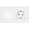 Vienpolis mechaninis jungiklis su kištukiniu lizdu, su įžeminimu, su plastikiniu rėmeliu (baltas)
