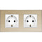 Dvivietis kištukinis lizdas su įžeminimu (baltas), su aliuminiu rėmeliu (auksinis)