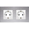 Dvivietis kištukinis lizdas su įžeminimu (baltas), su aliuminiu rėmeliu (sidabrinis)